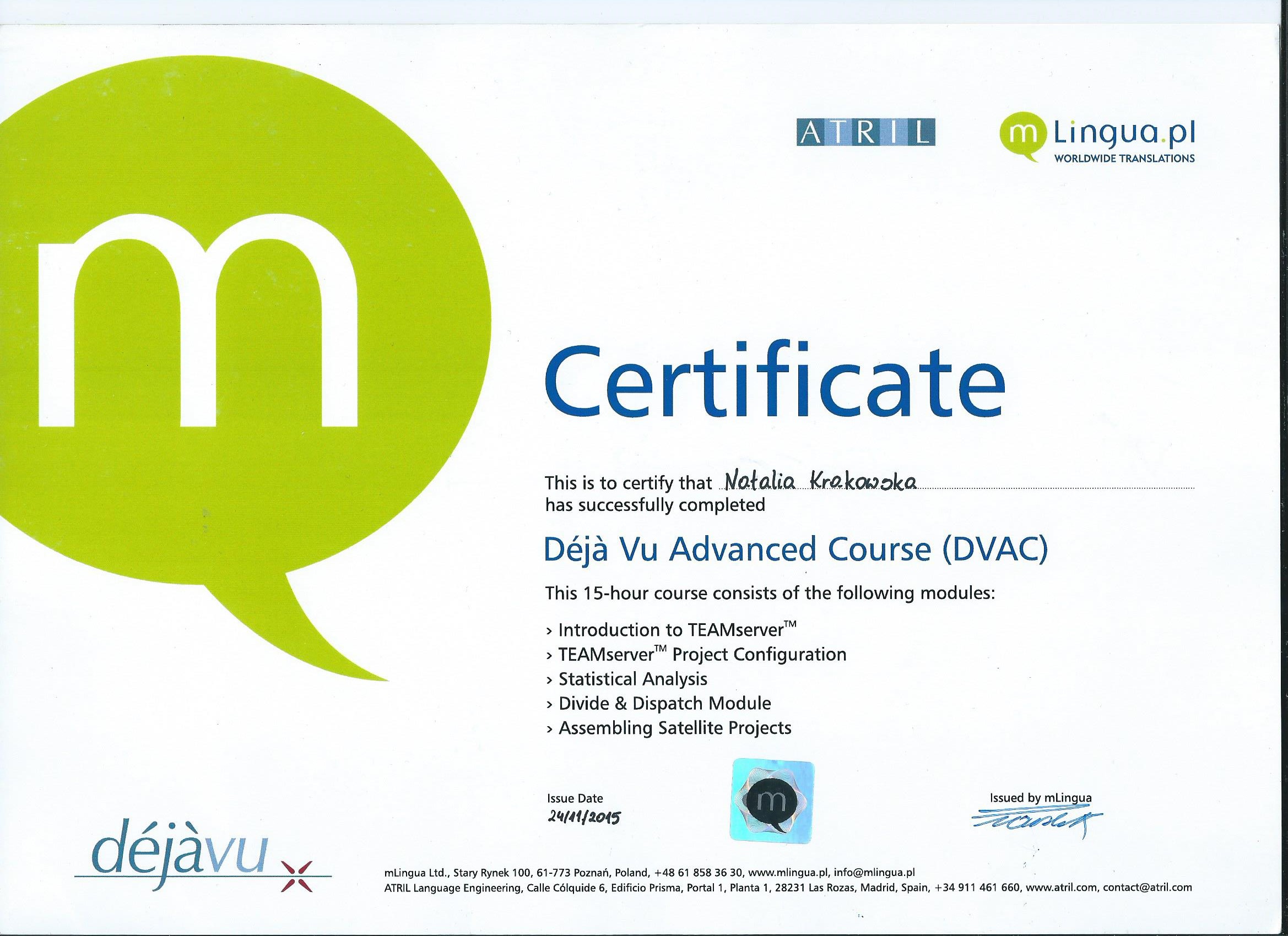 Kopie niektórych tłumaczonych tekstów (w języku oryginalnym i docelowym) mogą być przechowywane przez czas nieokreślony w celu doskonalenia zawodowego tłumacza i budowania bazy wiedzy (szablonów tłumaczeń). Podstawą prawną tego przetwarzania jest prawnie usprawiedliwiony interes Administratora.